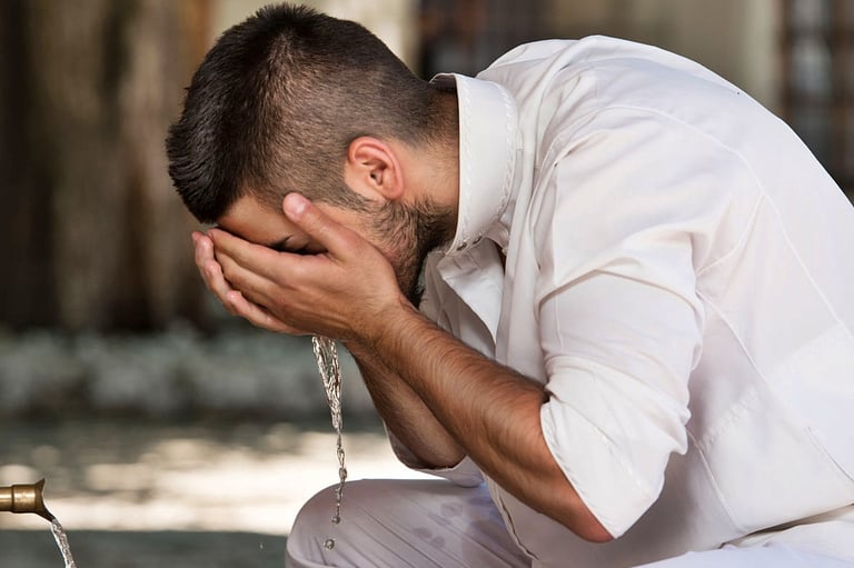 Wudu (or Wudhu) is a cleansing ritual or ablution that is an important part of purity and cleanliness in Islam before performing worship. It follows a process to wash hands, mouth, nostrils, arms, face, ears, hair and feet